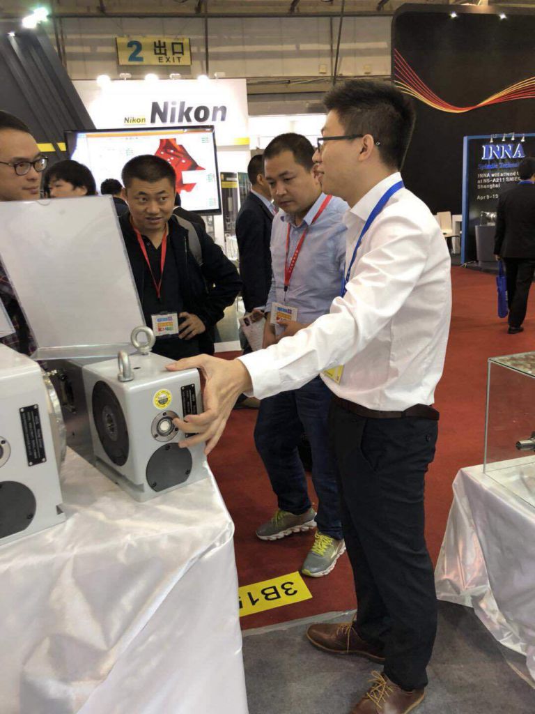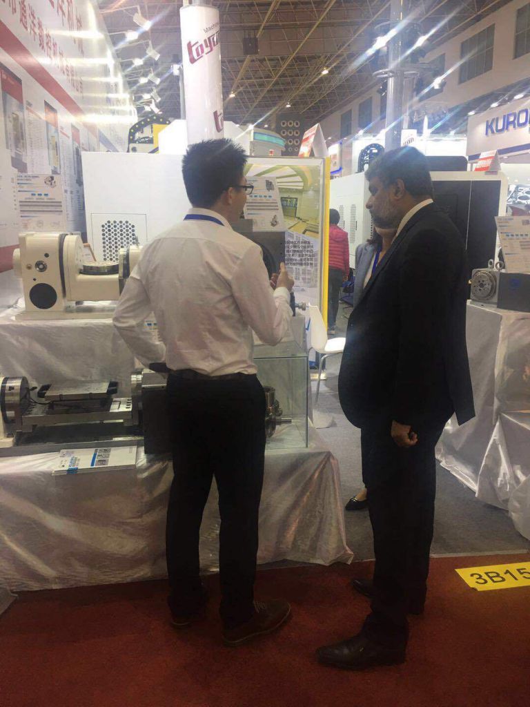 對(duì)于這場(chǎng)家門口的盛會(huì),沃迪士自然不會(huì)錯(cuò)過。凸輪滾子傳動(dòng)機(jī)構(gòu)的優(yōu)越性在這幾年間已經(jīng)漸漸被行業(yè)所認(rèn)識(shí)和認(rèn)可,沃迪士攜帶第四軸數(shù)控轉(zhuǎn)臺(tái)(盤面直徑120mm到400mm)以及單臂五軸、搖籃五軸產(chǎn)品在DMP現(xiàn)場(chǎng)吸引了很多的用戶和經(jīng)銷商前來討論詢價(jià),新開發(fā)面世的主軸擺頭則讓來訪的數(shù)控機(jī)床商津津樂道,與我們的銷售經(jīng)理熱烈討論配套開發(fā)新型高端機(jī)床的合作方案。